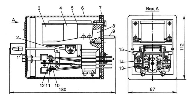 переведенный особо усиленный (с магнитом дугогашения) контакт 13, общий усиленный контакт 14, нормальный особо усиленный контакт 15.