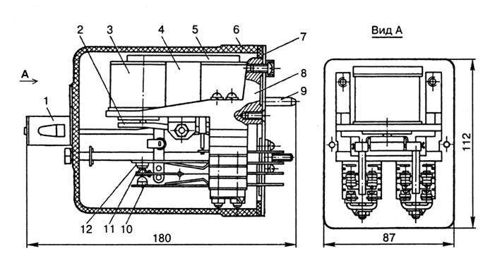 направляющий штырь 9, переведенный контакт 10, общий (подвижный) контакт 11,