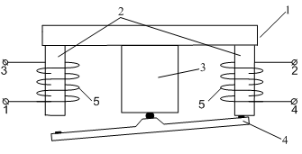 поляризованного якоря 4, ярма 1, двух постоянных магнитов 3.